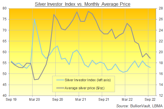 Golden Window上的白银买家数量比八月份增加了4.5%,但卖家数量则增加了45.6%,是六年来最大的环比增幅。这也推动白银投资者指数下跌0.9至53.0。这是自三月份以来的最低水平。